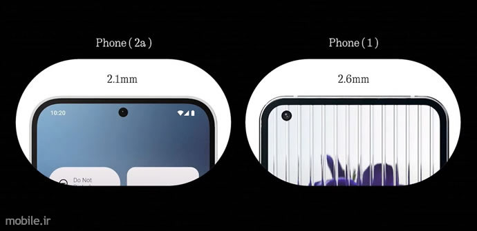 یک نکته مثبت در رابطه با این صفحهنمایش به حاشیههای یکسان دورتادور آن تعلق دارد که بهگفته شرکت سازنده با 2.1 میلیمتر کوچیکترین حاشیه دورتادور صفحهنمایش این شرکت تا به امروز (our thinnest bezels to date) بوده و از Phone (1) با حاشیه 2.6 میلیمتری کمتر است.