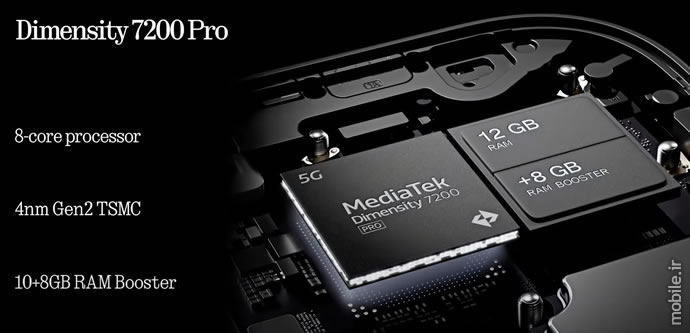 پردازش در Phone 2a با پروسسور 4 نانومتری دیمنسیتی 7200 شرکت مدیاتک انجام میشود که ناتینگ یک پسوند Pro را به نام آن افزوده است. در ساختار این چیپست از هستههای A715 و A510 شرکت Arm استفاده شده که نسبت به پروسسور +Snapdragon 778G حاضر در Phone (1) هستههای جدیدتری بهحساب میآیند و لیتوگرافی 4 نانومتری آن نیز نوید مصرف انرژی پایینتری را میدهد اما از سوی دیگر تعداد هستههای قویتر این چیپست نصف شده و از 4 به 2 رسیده که نکته منفی مشهودی بهنظر میرسد. دو هسته قویتر این چیپست حداکثر از فرکانس 2.8 گیگاهرتز پشتیبانی میکنند و 6 هسته ضعیفتر A510 آن نیز 2 گیگاهرتزیاند. گرافیک این چیپست نیز 4 هستهای از نوع Mali-G610 است. رم گوشی 8 یا 12 گیگایایت است و 128 یا 256 گیگابایت حافظه داخلی دارد که شرکت سازنده به استاندارد سرعتی هیچیک اشارهای نکرده است.