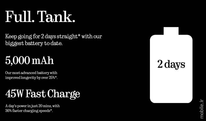 ظرفیت باتری گوشی نسبت به هر دو مدل قبلی این خانواده بیشتر شده و بالاخره به ظرفیت باتری اغلب دیگر گوشیهای همرده در این کلاس یعنی 5,000 میلی آمپر ساعت رسیده است. این باتری که شرکت سازنده یک بار شارژ آن را در یک استفاده مشخص برای 2 روز کافی میداند از حداکثر توان شارژر 45 واتی پشتیبانی میکند که این شارژر طبیعتاً جایی در جعبه کوچک و باریک دستگاه نداشته و باید آن را جداگانه تهیه کرد. این شارژ بهگفته ناتینگ ظرف 23 دقیقه 50 درصد از ظرفیت باتری را پر کرده و فول شارژ آن نیز به 59 دقیقه زمان نیاز دارد.
