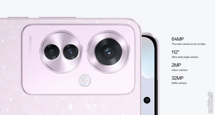 یک دوربین اولتراواید 8 مگاپیکسلی – با میدان دید 112 درجه و گشودگی f/2.2 – به کمک دوربین اصلی میآید. عضو دیگر این مجموعه نیز یک دوربین ماکروی 2 مگاپیکسلی (f/2.4) است. در بالای نمایشگر نیز یک حفره به چشم میخورد که یک دوربین سلفی را در خود جای داده است. این دوربین – که ظاهرا از سنسور IMX615 سونی تشکیل شده – رزولوشن 32 مگاپیکسلی دارد. میدان دید دوربین سلفی 90 درجه و ضریب اف آن 2.4 است.
